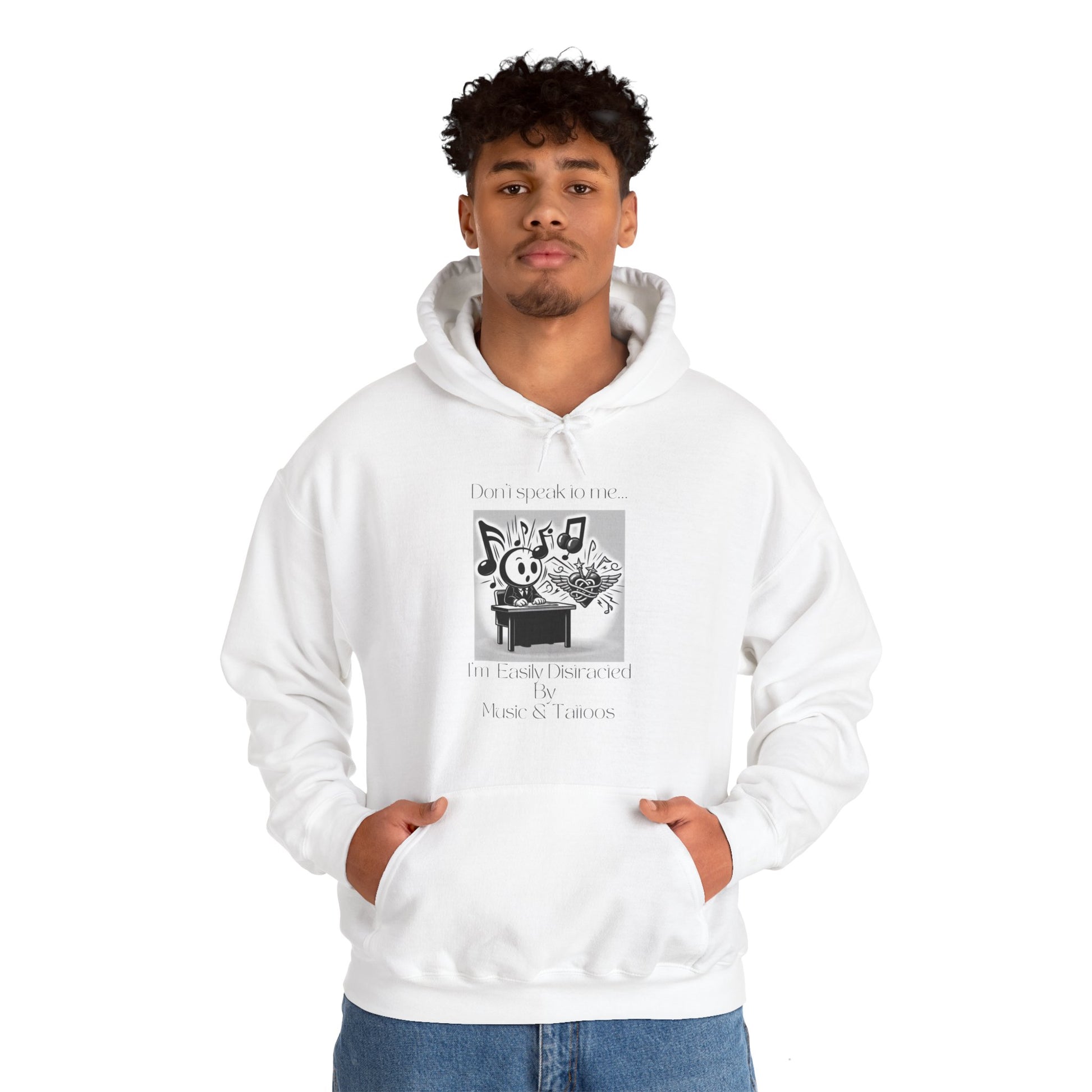 "Don't talk to me- I'm easily distracted by music and tattoos" Hooded Sweatshirt