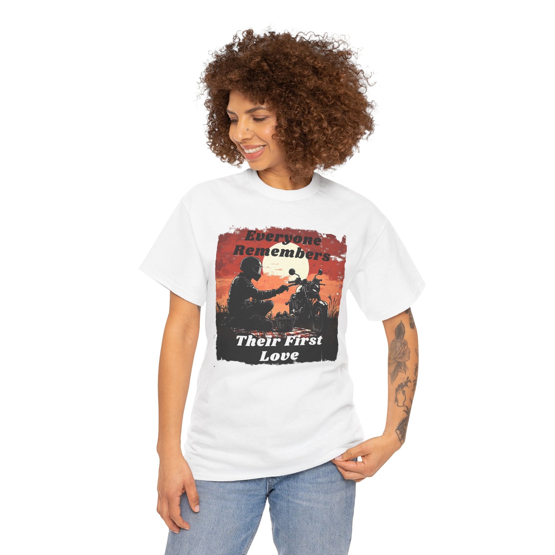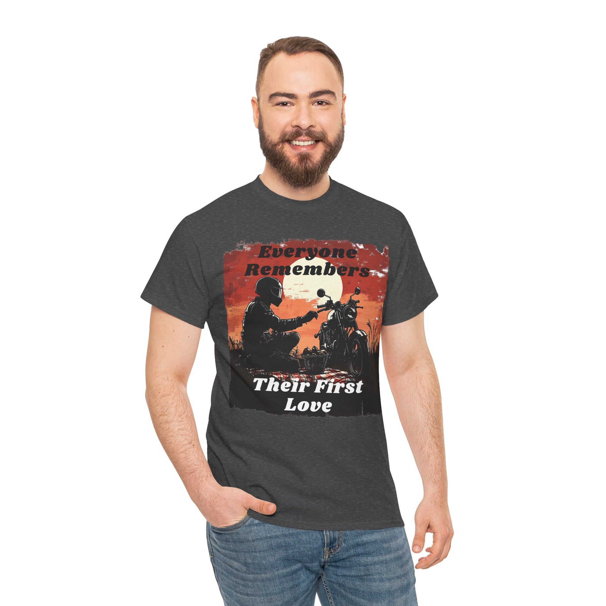 Think back to those fond moments with the one you love with our "Everyone remembers their first love" t- shirt.
