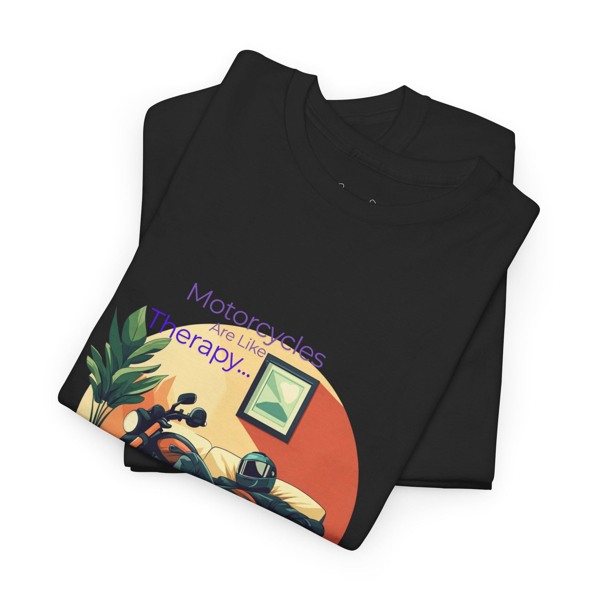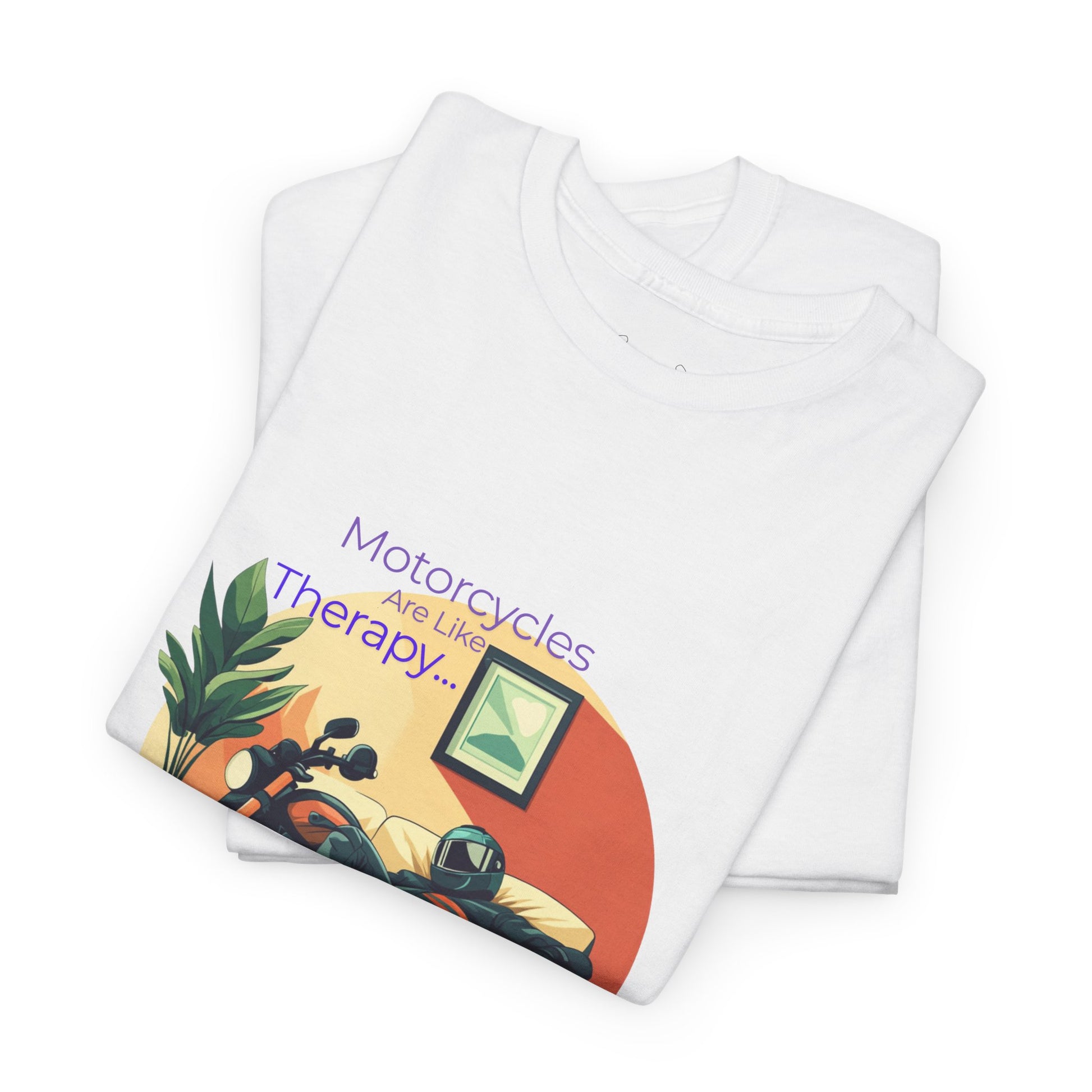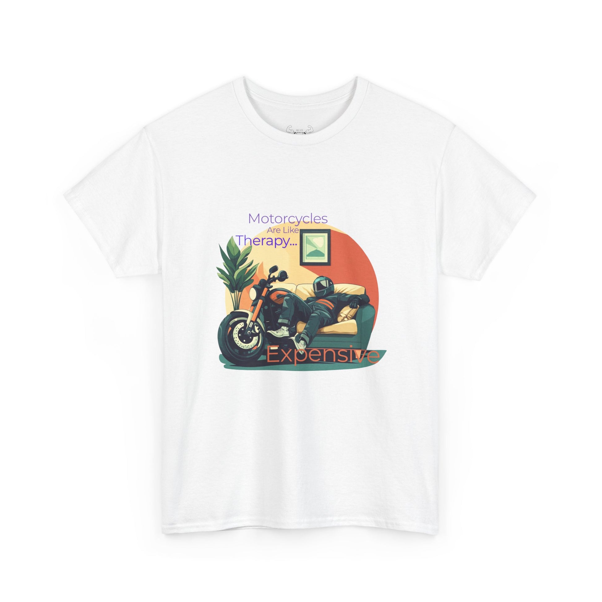 Start chuckling with our "Motorcycles are like therapy... Expensive" T-shirt. For when the insurance bill makes you tremble.