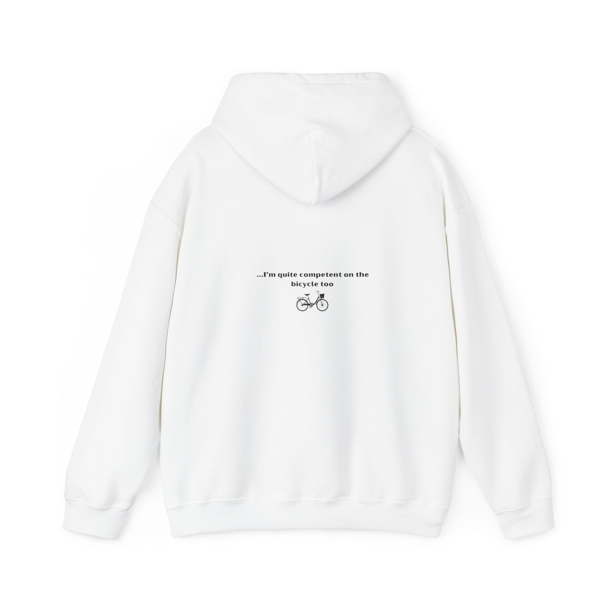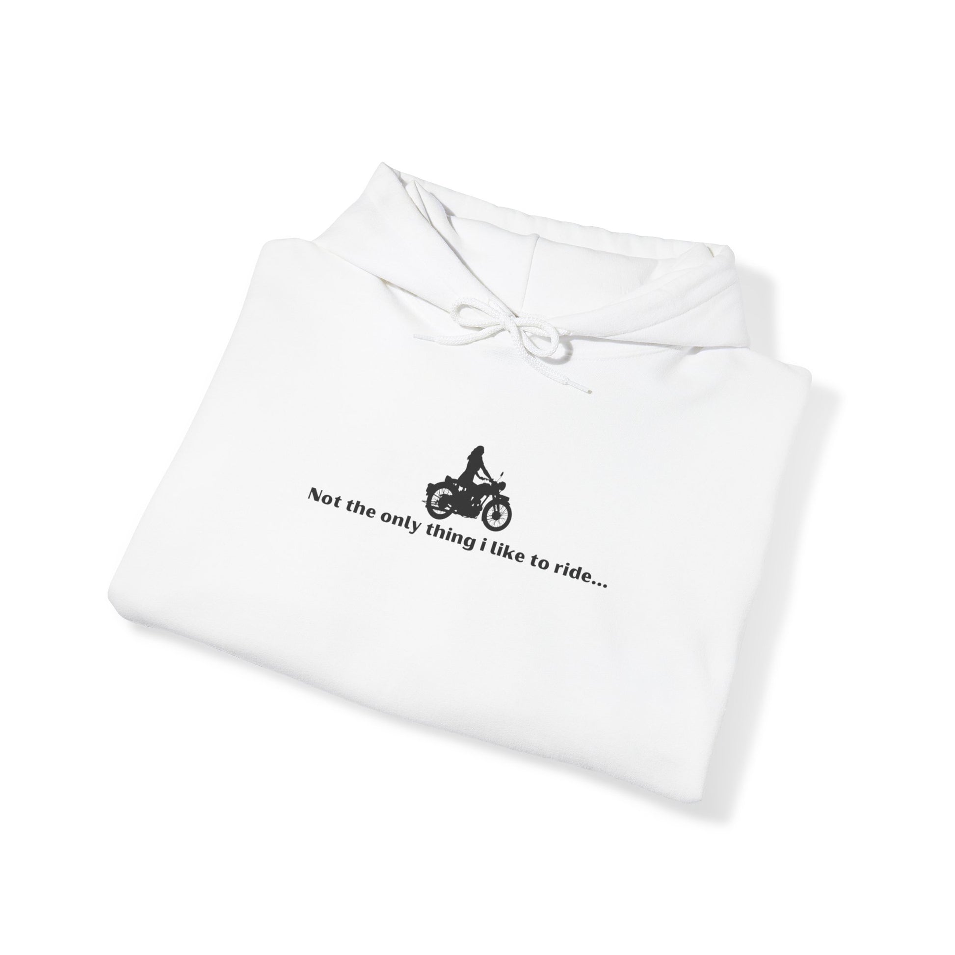 "Not the only thing I like to ride- I'm quite competent on the bicycle too" Unisex Hooded Sweatshirt