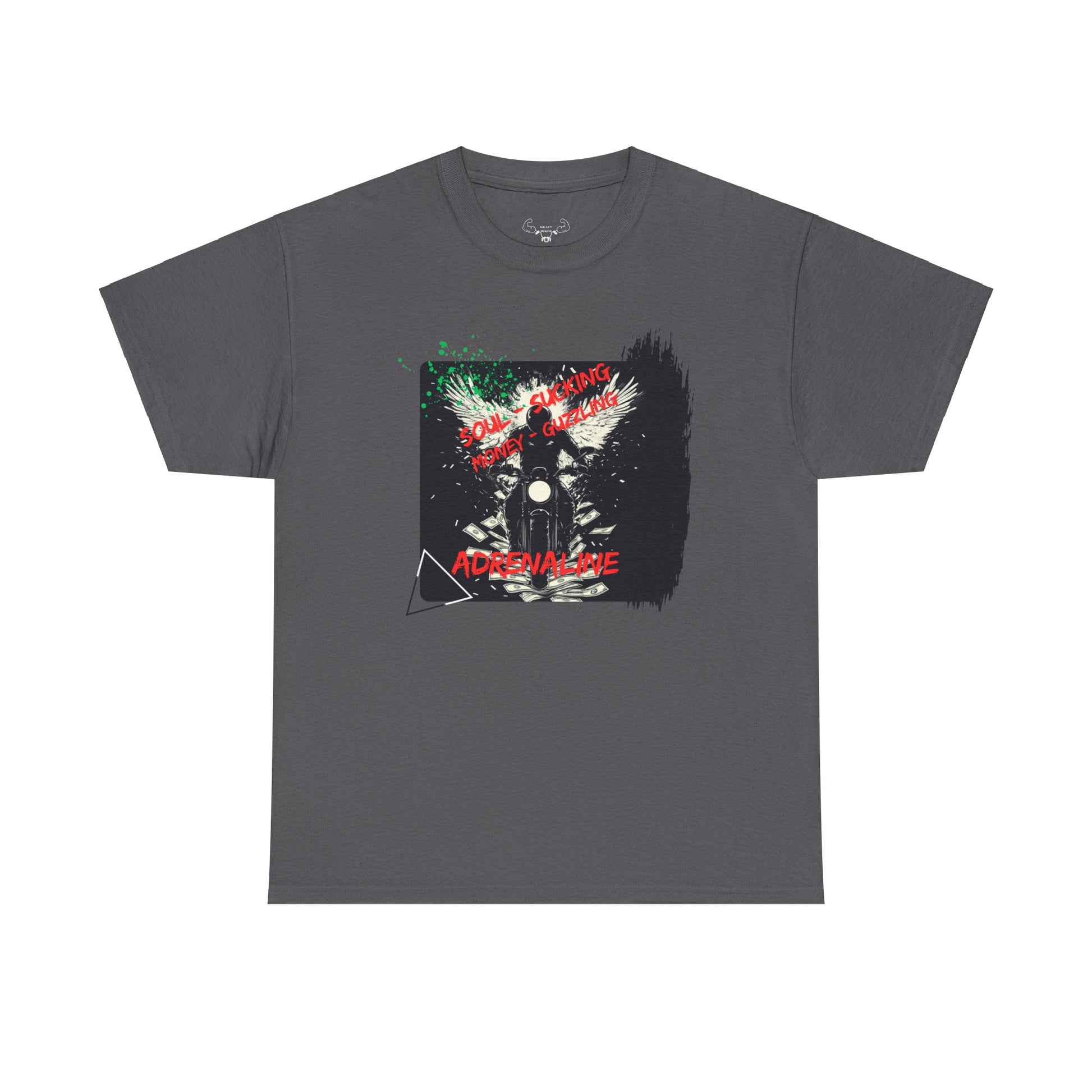 For all the dirty, dirty adrenaline junkies; have we got the perfect shirt for you! Show your rebellious angst with our new "Soul-sucking Money-guzzling Adrenaline" Unisex t-shirt.